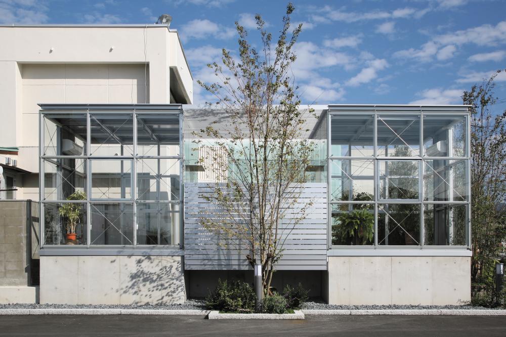 このような中、2002年5月に建築基準法が改正され、アルミが建築構造材として認可されます。SUSはそれまで培ってきたアルミフレームに関する技術を生かす好機と捉え、同年10月ecoms事業部を立ち上げ、この分野に参入しました。アルミ製家具の開発、販売を皮切りに、2003年5月には自社の建築であるecoms hallを完成させます。その後も建築家への部材供給、建築家との協働による建築システムの開発にも取り組み、数多くのアルミ建築を実現させてきました。また、2005年9月には初のオールアルミ住宅・静岡M邸が完成。アルミの特性を生かした輻射冷暖房設備や制振ダンパーを持つこの住宅では、竣工後もその効果を検証すべく、継続的にデータ収集を行っています。