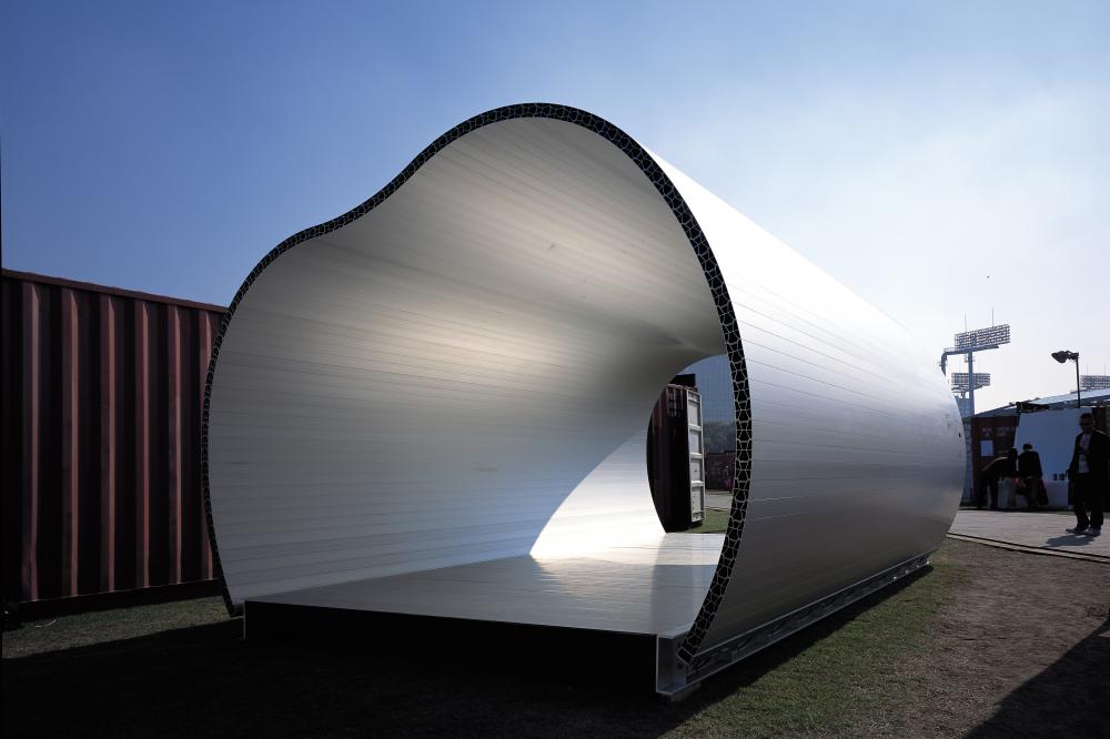 ⑤アルミハウスは耐久性の高い素材やパーツ類で構成され、土工事を除きすべて組立作業を基本とする。移設も短時間で解体され、すべての部材は再利用され再組立できることを基本とする。
