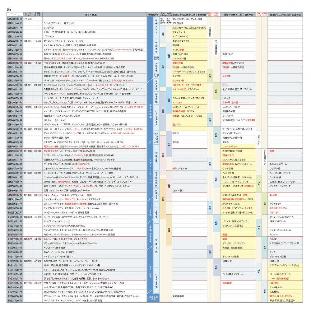 これまでは、日本の住宅供給サイドを研究してきましたが、今回は、世代別に家族像、その生活、住宅を、年別ヒット商品、流行語によって分析します。