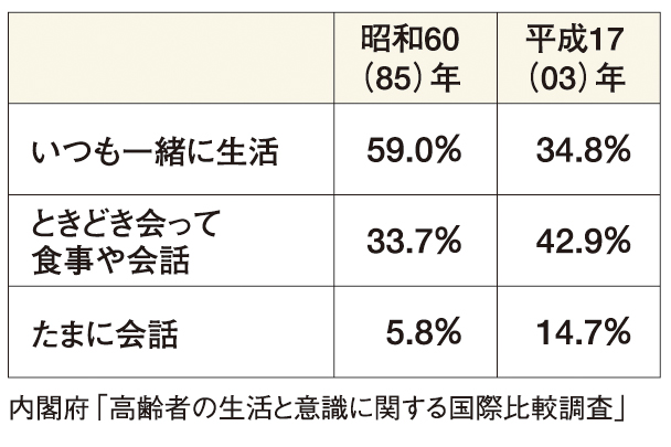 2世代、3世代同居を望まず、老夫婦のみで自由に生活することを望む高齢者が3世帯に2世帯となっています。この傾向は、「団塊の世代」でより顕著になると考えられます。