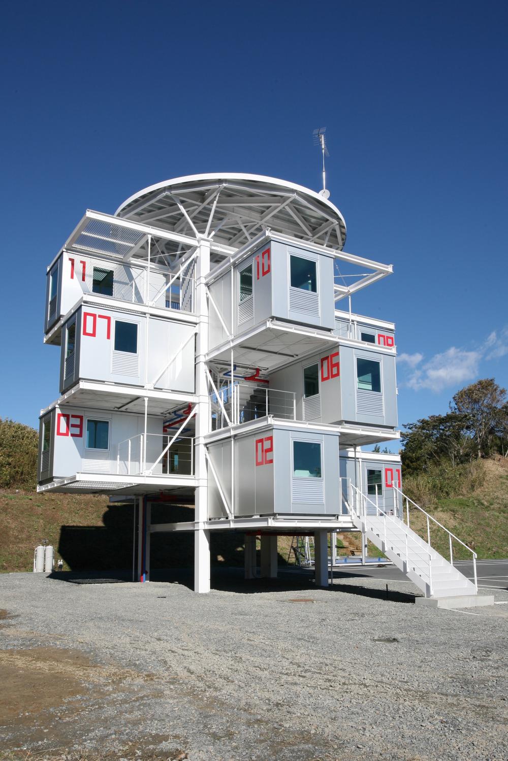 ⑤アルミハウスは耐久性の高い素材やパーツ類で構成され、土工事を除きすべて組立作業を基本とする。移設も短時間で解体され、すべての部品は再利用され再組立できることを基本とする。