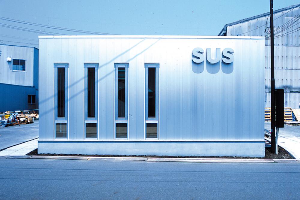 断熱は主に屋根面での外断熱とし、外壁では断熱材は用いず開閉窓の採用と箱型断面外壁材内での対流による熱交換を図りました。アルミニウム部材の加工はその殆どをSUSが自社工場にて切断・加工し、工事現場へ支給する自社供給体制としました。これにより各部材寸法の許容誤差を0.5mm以下と高精度とすることが出来、施工精度は通常の鉄骨造より高精度となる柱傾斜角=1/2000以下(一般の鉄骨造は1/1000以下)とすることが出来ました。完成時の建て方計測結果はこの監理目標値を十分満足するものとなっていました。