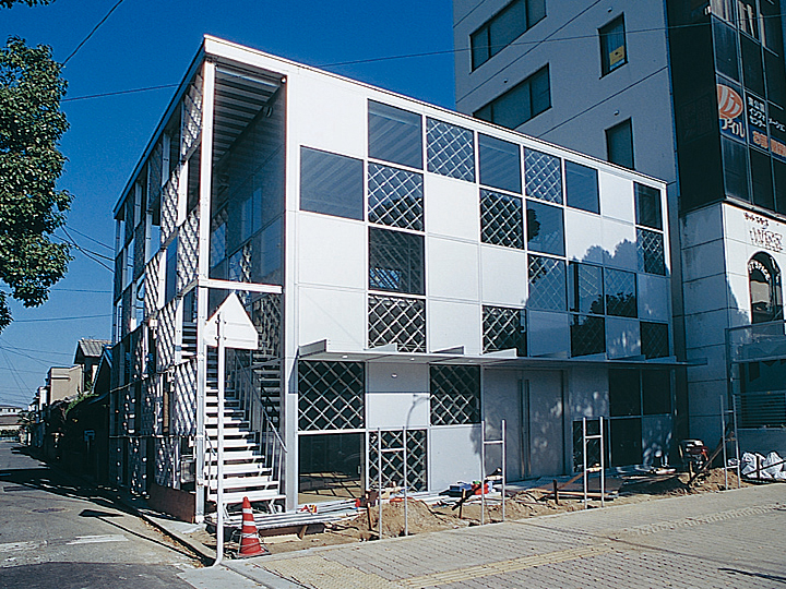 今回、『ココスガーデン』の設計を一任された「山本理顕設計工場」元のスタッフで、現在福岡市内に事務所を構える佐野正樹氏。新工法による一般建築第1号であるのはもちろん、開発者の手を離れ、別の建築家がラチスパネルを全面に使った建物を設計するという点に、大きな注目が集まりました。