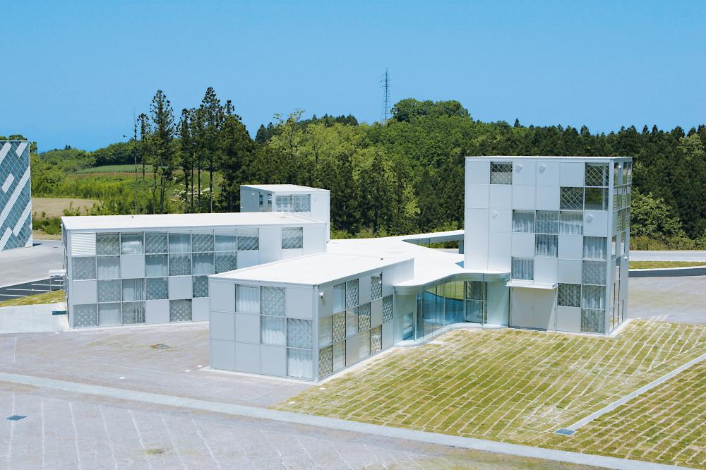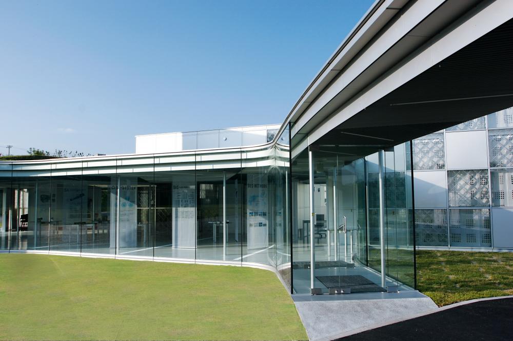 燦々と降り注ぐ陽光に光り輝くアルミ建築、真っ白なスレートが眩しい工場外壁。穏やかな空気が漂う広大な敷地の一画に忽然と佇むその姿には、訪れた人の誰もが目を見張ります。