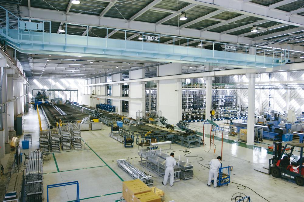 2005年5月30日、SUS福島事業所が完成。限りなく進化していくアルミ建築と、SUS初、アルミフレームの一貫生産設備を備えた最新の生産工場をご紹介します。