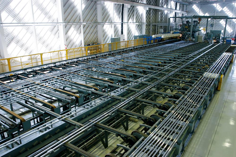 およそ500℃の熱でビレットと呼ばれる棒状のアルミ塊を熱し、柔らかくなったところをトコロテンのように押出して、アルミフレームを成形していきます。1分間に約20m~40mの長さでフレームは押出されていきます。生まれたてのアルミフレームは4mに切断され、熱処理を施された後、アルマイト工場へと移されます。ここで表面処理(陽極酸化皮膜処理)が行われ、アルミフレームはより腐食し難くなるのです。その後は、ご注文に合わせて加工・切断され、製品としてお客様の元に届けられています。