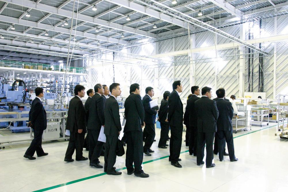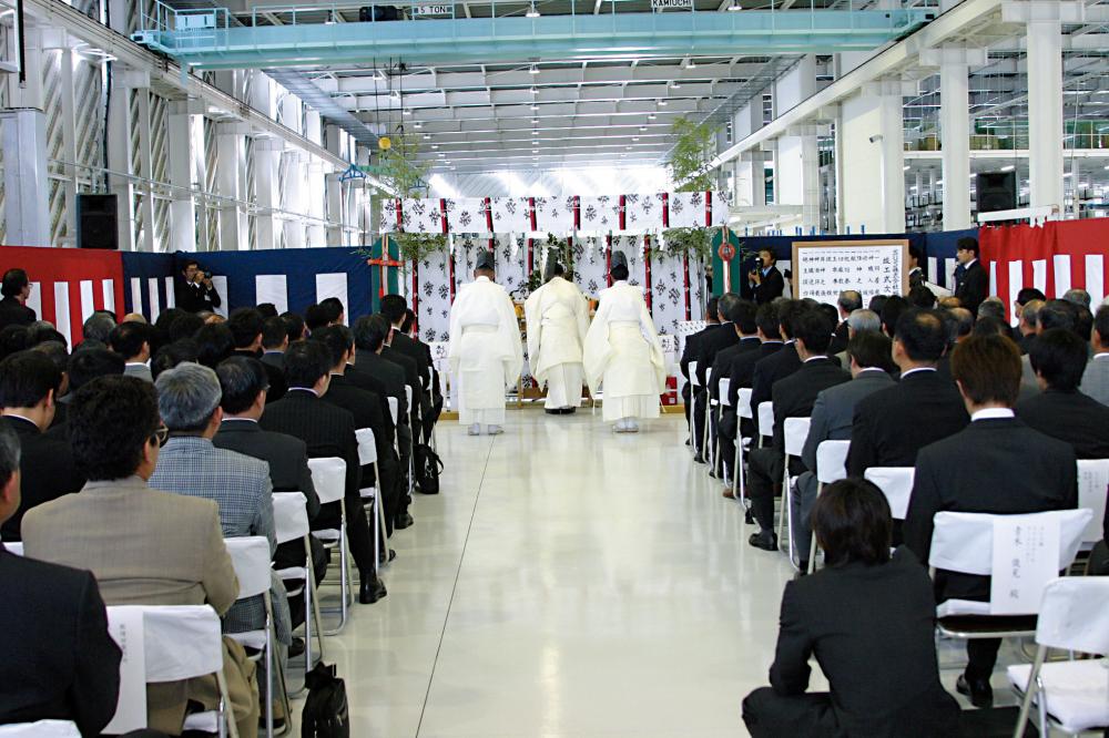 2003年9月、アルミフレームの自社生産設備の導入に踏み切ったSUSは、福島県須賀川市にある福島未来博跡地「須賀川テクニカルリサーチガーデン」内に工業用地を取得し、翌年2004年5月から事業所建設着工。同年11月のアルミ押出工場完成を経て今年2005年5月30日、アルミフレームの押出から切断・加工・出荷までは一貫して行うSUS福島事業所がついに竣工しました。
