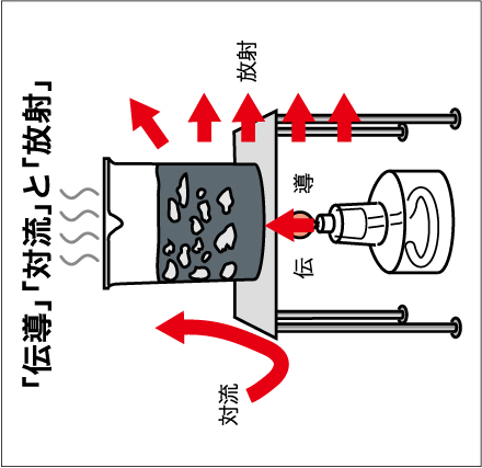熱の伝わり方には「伝導」「放射」「対流」がある
