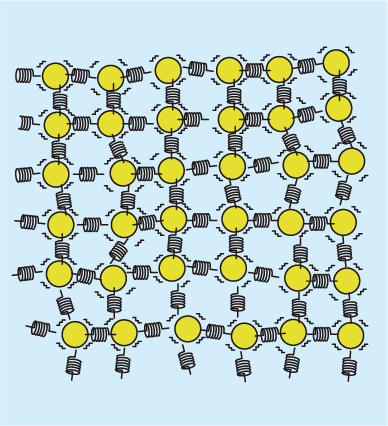 例えば、常温(20℃)のアルミ板で考えてみます。このとき、アルミ板は前出の原子というビー玉が互いにバネによって金属結合している状態で、原子は20℃を保ちながら互いに振動しています。