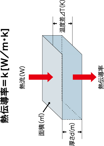 厚さ1mの板の両端に1℃の温度差がある時、1㎡を通して1秒間に流れる熱量のことを熱伝導率といいます。