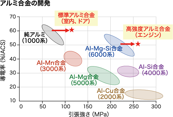 ① 強度(引張強さ)と電気伝導性を両立したアルミ合金の開発