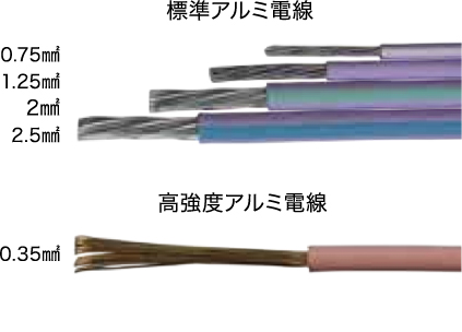 開発については、住友電工と材料の供給元である住友電工グループ・富山住友電工とオートネットワーク技術研究所の共同で進め、新しく合金を2種類開発しました。1つ目は、従来銅電線で低圧用電線に多用される導体断面積0.5㎟に相当するアルミ電線で、われわれが標準アルミ電線と呼んでいるものです。アルミは銅に比べ電気伝導度が低いため電気抵抗を同じにするためには断面積を大きくする必要がありますが、むやみに大きくするわけにはいきません。そこで0.75㎟という目標を設定し、伝導性の低下を抑えつつ強度を向上させる開発を進めました。結果的にはFe(鉄)とMg(マグネシウム)を添加することで、約140MPa(メガパスカル)の引張強さを有する合金を開発することができました。純アルミが約70MPaですから、その2倍程度の強度があるものの、銅は約240MPaあります。ある程度の太さがあるものであればよいのですが、細いサイズでの強度が足りません。そこで開発されたのが2つ目のもので、250MPaの引張強度がある高強度アルミです。アルミニウムにMgとSi(ケイ素)を添加することで実現しました。振動による金属疲労が起こり難いのでエンジン用にも採用されています。軽いのでエンジンがかかっているときの共振も少なくてすみます。現在は、一番細くて直径155㎛(マイクロメートル)まで導体素線を細くできるようになりました。髪の毛は100㎛弱ですから、いかに細いか想像できると思います。155㎛で自動車用アルミ電線をつくっているのは住友電装だけです。純アルミ系の素材であれば、ICチップを留めるボンディングワイヤやハードディスクのヘッドを動かすコイルの線に200㎛より細いものがありますが、6000系合金(Al-Mg-Si系合金)で155㎛というのは大変ハードルの高い開発でした。