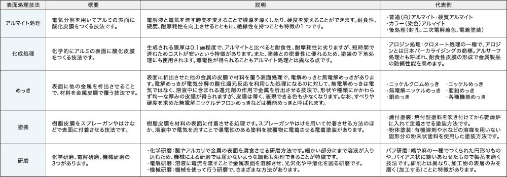 ■アルミに対する表面処理にはどのような選択肢がありますか。