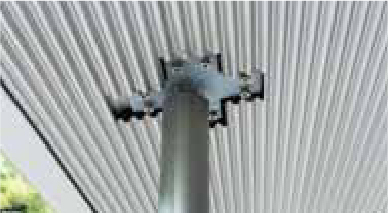 当構築物における柱脚のアルミ形材表面処理加工は、アルマイト皮膜上にウレタン樹脂塗料を静電塗装によってB種の複合皮膜で仕上げたもので、エッジ部、コーナー部の塗膜の塗着性は劣り、硬さも鉛筆のH程度と比較的に柔らかい。アルミ押出形材のような複雑な断面に対し、静電塗装ではコーナー部、入隅部、エッジ部などへの塗着性は悪い。なお、現在のアルミ表面処理は、アルマイト後に電着塗装を施す複合皮膜が主流である。その電着塗装はコーナー部、エッジ部への塗膜の均一性に優れている。