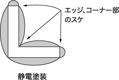 b)十字型形材エッジ部の表面処理加工部の化学的性能の劣化