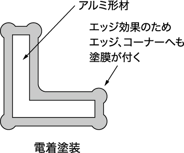アルミ建材の表面処理仕様のうち、複合皮膜の電気絶縁性抵抗は105~106Ωcmを有し、電気化学的接触腐食が防止できる。