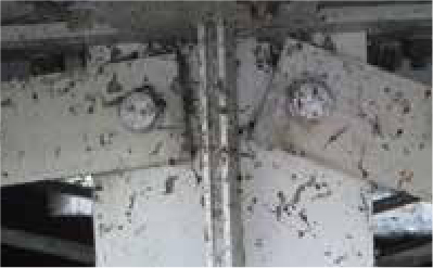ステンレス鋼六角ボルトには、鱗片状亜鉛積層エポキシ樹脂塗装処理が施されており、軽微な赤さびは見られるが、アルミの白色流れシミは軽微で、アルミ-ステンレス鋼間での接触腐食の防止効果を発揮していた。
