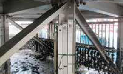 ブレース・リブ、接合プレートの溶融亜鉛めっき処理の鋼材は、海洋付近では早くから赤さびが発生した。よって亜鉛めっきだけでなく、防食性塗膜を施すなど再考する必要がある。