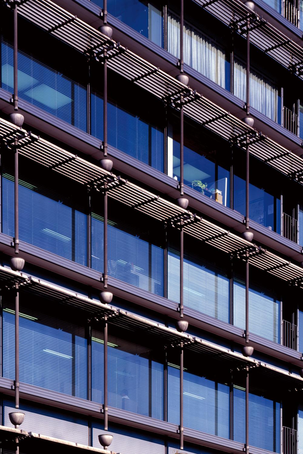 覆ってしまうと点検の際に手間が大変ですから、否応なしに露出型のディテールになっているわけです。この建物では歩きながらすべてチェックするという精神が重要だと思いましたので、狭いながらもバルコニーを設けています。点検もメンテナンスもしやすいバルコニーがあるビルの方が安心です。