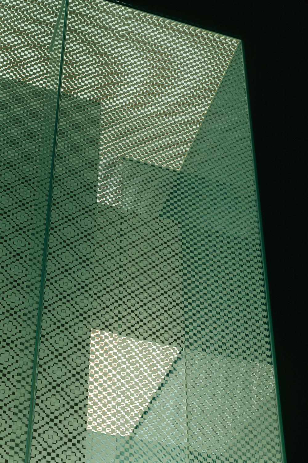 9ミリ厚のアルミです。ブレードの小口と側面の仕上げをそれぞれ別に扱って4種類の組み合わせとし、全体としてダミエ・モチーフ(ルイ・ヴィトンの代表的モチーフの1つ)を浮かび上がらせたかったため、小口が認識できる厚みが必要でした。また、香港の街には独特の強さがありますので、ルーバー自体に〝ごつい〞という感じがほしかったということもあります。いろいろ試してみましたが、9ミリくらいないとあの街に合う物質感にならないと感じました。