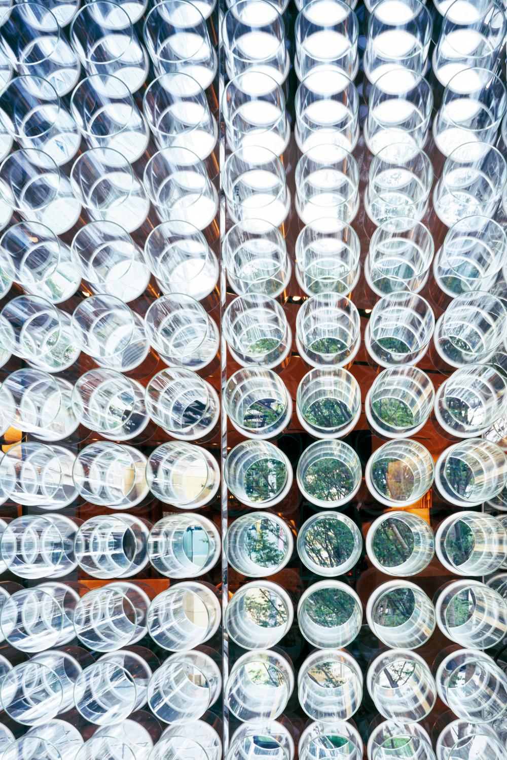 たしかにそうですね。ルイ・ヴィトン六本木ヒルズ店では、透明なガラスを組み合わせて白っぽい霧のような、乳白色の白濁した感じをつくろうとしました。ガラスのチューブを用いれば、よりたくさんの光の乱反射が起こり、それが集まれば真っ白になるだろうと考えたのです。そもそもパーティなどで並べるシャンパングラスがヒントになっています。あれはすべて透明できれいですが、並べるとまた違った表情が生まれます。