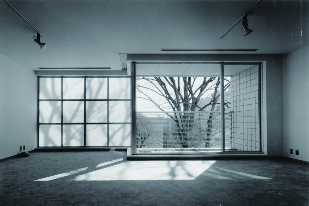 第3期で取り組んだのは、われわれが障子サッシと呼んでいるものです。複層ガラスの間にガラスティッシュを入れたもので、光は通すけれども向こうは見えない障子のようなスクリーンです。既製のアルミアングルやT形バーを使ってつくりました。私たちが一番気にしたのは、長い間使っていると色が変わるのではないかということです。ガラスティッシュですので腐食はしないはずですが、日に照らされることで黄変するのではないかと心配しました。ガラスメーカーの見解どおりフッ素ガスを注入したためか、現在も黄変は見られません。 障子サッシは、その後のアルミスクリーンにつながる「透過性のある表層の表現」の1つのかたちだといえるでしょう。東京キリストの教会(1995年)では、これを大胆に改良して使っています。ガラスティッシュをどのくらい入れるのがよいかなど、実際に検証して決めていきました。