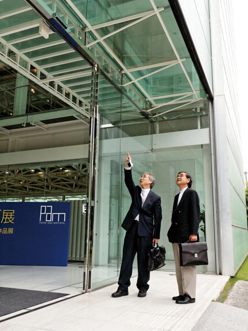 巨大ルーバーが駆動するSUSタイランドの設計を、SUSと共同で手掛けた都市造形研究所の伊井伸氏と、本誌「アルミ構造設計入門」の連載でもおなじみの構造建築家の飯嶋俊比古氏が「特種東海製紙Pam」を訪れました。