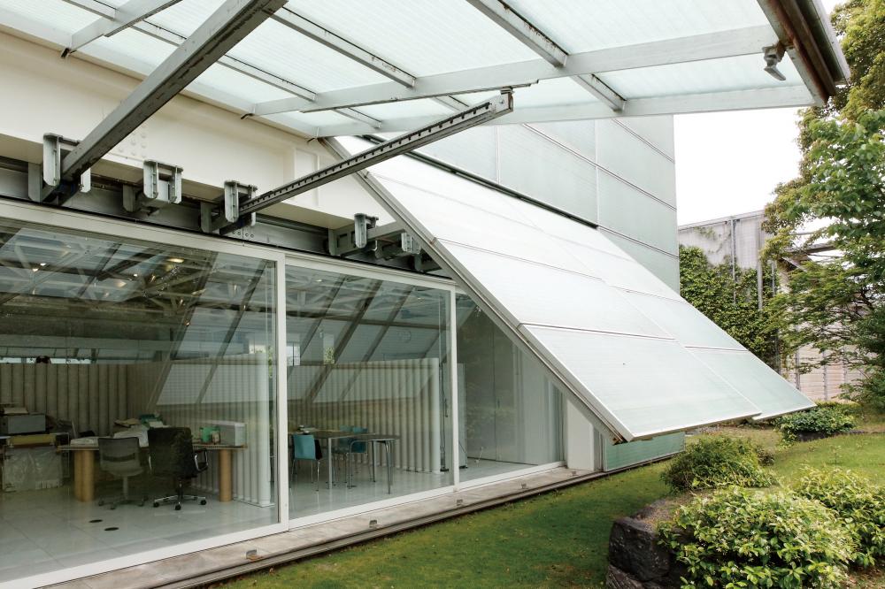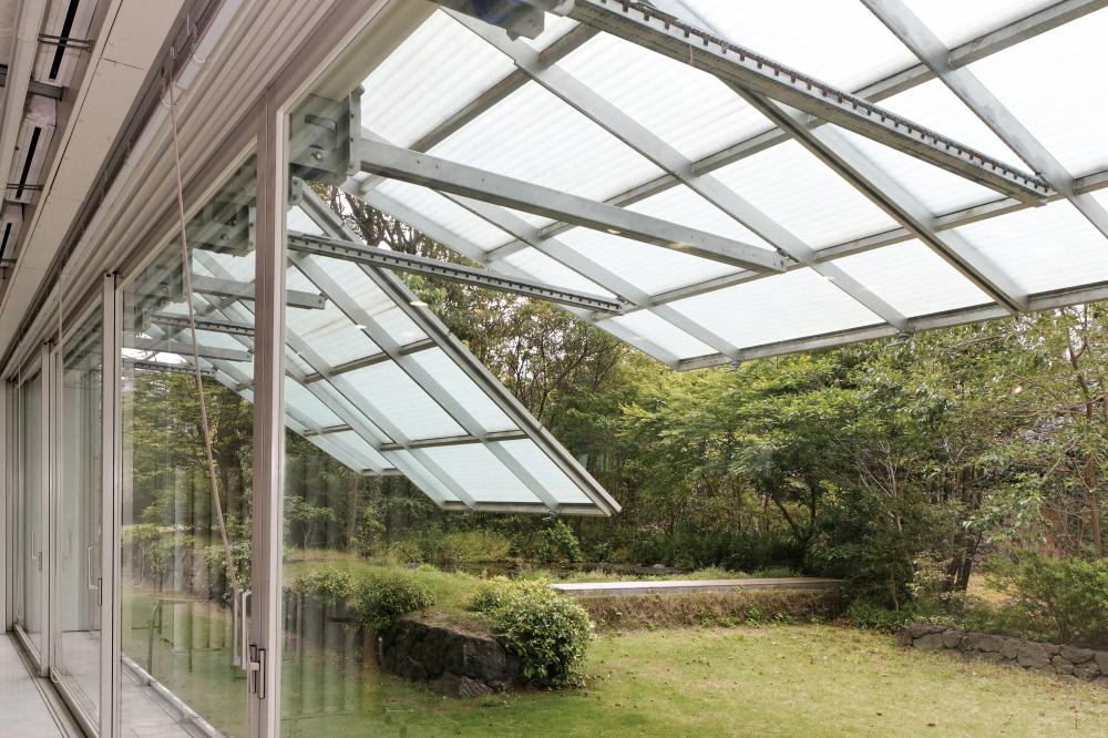 飯嶋 A棟は可動する部分と可動しない部分があり、構造そのものは動きません。動くということは固定されていないということですから、部品、部材が動けるように構造的に自立と言うか完結、または独立して存在しているということですね。B棟も外壁が動きますが、動いた結果生み出される空間の意味は、A棟とB棟では違うのではないかと思います。A棟はドラマチックに庭を見せる、B棟は中間領域の創出と言う感じでしょうか。