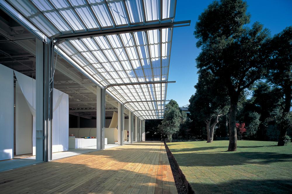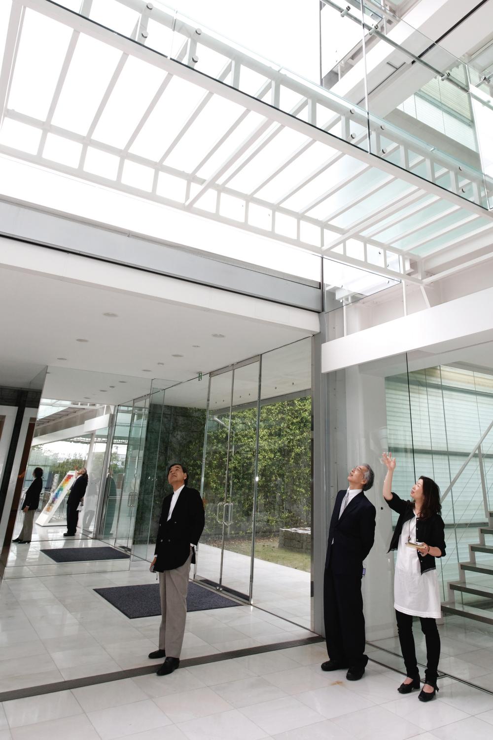 伊井 建物に近づいて感じた第一印象は大きなガラスの箱でした。しかし建物内部空間に入り、大きなガラスシャッターが可動し、側壁のガラスまでもが可動する姿はこれまでの建築の概念を超えた驚きと新鮮さを感じました。全てが開いた状態では初めの箱の印象はどこかに消え、全く別の空間に遭遇した感を持ちました。